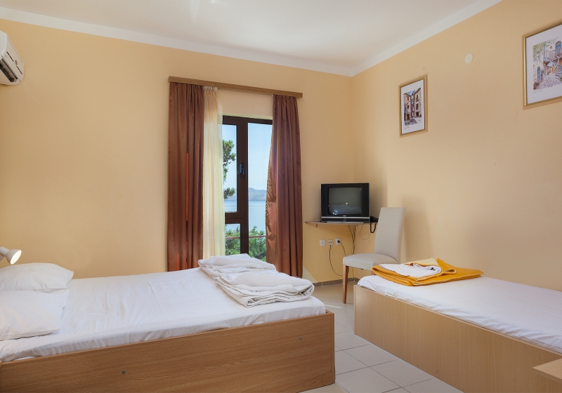 Ubytování: dvoulůžkové pokoje s možností až 2 přistýlek, jsou orientovány na mořskou stranu s francouzským oknem nebo na park s terasou (dvoulůžkové pokoje se 2 přistýlkami jsou orientovány na severní stranu), mají vždy TV, klimatizaci, ledničku a vlastní sociální zařízení